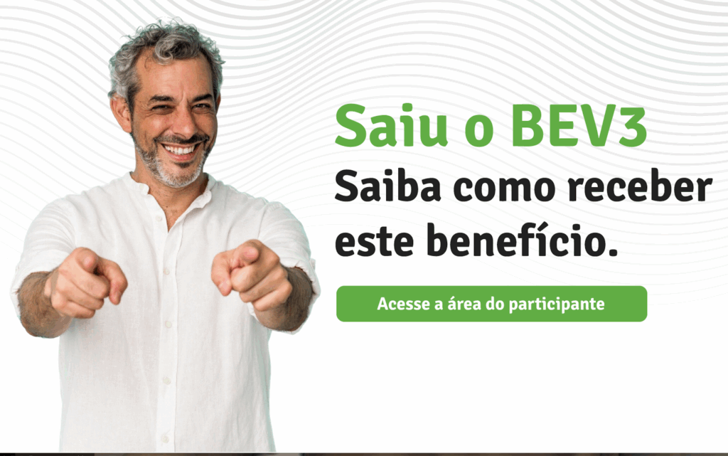 Têm direito a receber o BEV3 o participante ativo no plano em 31/12/2024, com idade a partir de 55 anos e com 60 meses de vinculação ao plano. Não têm direito a receber o BEV3 os participantes que finalizaram o plano antes de dezembro de 2024, por exemplo: participantes com o recebimento de PPV ou com recebimento de PPM, com o evento de morte ocorrido antes de 31/12/2024.